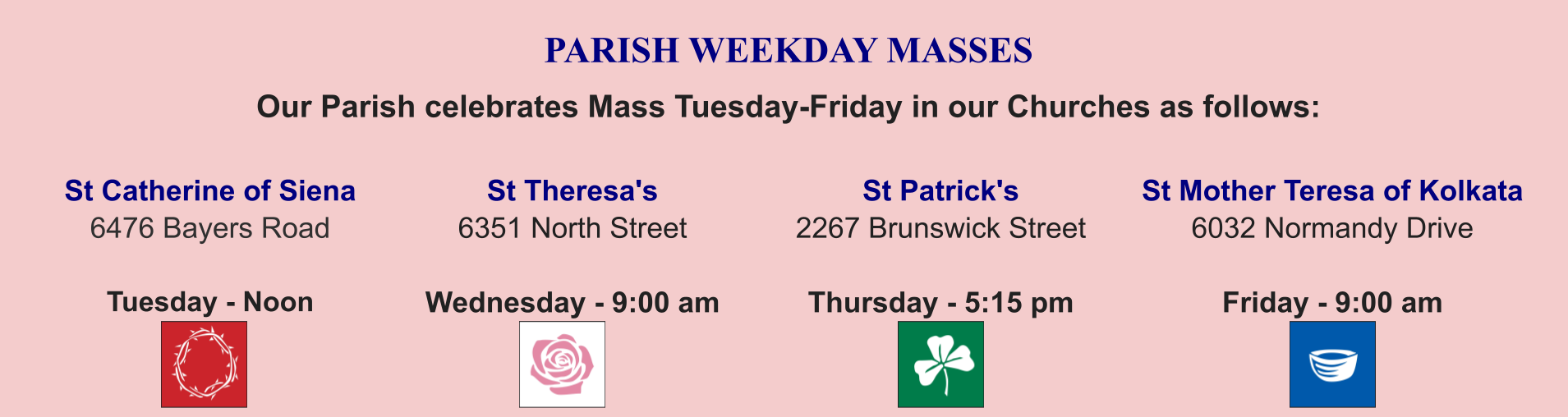 Please note that the scheduled weekday Mass at St Patrick's has changed to Thursday at 9:00am
