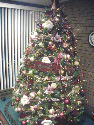 This is the other tree, called the Victorian Tree, featuring mauves and burgundies with lots of Old World Santas and angels.