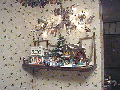 These Department 56 Village pieces depict a country store and gas station and an old mill.
