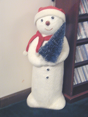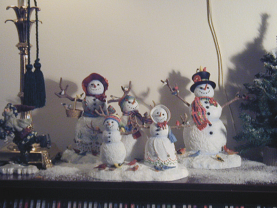 This little guy is called "Billy Buttons" (see, he has buttons for eyes and buttons running down his front), and there are a whole series of figurines and ornaments of him and his friend Moose by Department 56. Father has a few more "Billy's" scattered around the house.